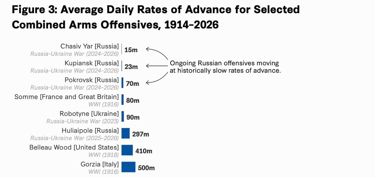 Темпы продвижения российской армии в Украине стали самыми низкими более чем за 100 лет современной истории войн,